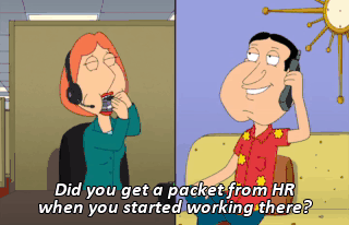 Did you get a packet from HR when you started working there? Mmm-hmm.