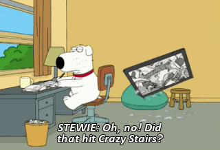 STEWIE: Oh, no! Did that hit Crazy Stairs?