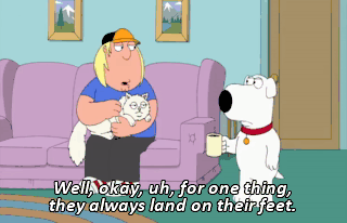 Well, okay, uh, for one thing, they always land on their feet. Watch.