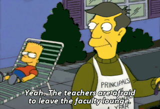 Yeah. The teachers are afraid to leave the faculty lounge.