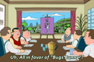 Uh, All in favor of "Bugs Bunny"? Mmm-hmm. And all in favor of "Ephraim the Retarded Rabbit"? Oh, You can all go to hell! Hey, Where's the Mayor's office? Uh, Last door on the left. Come on. Come on.