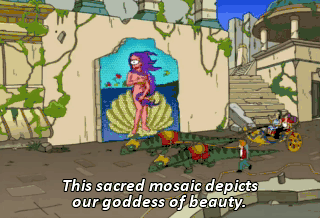 This sacred mosaic depicts our goddess of beauty. Hmm. You got any sacred artwork of her from the back?