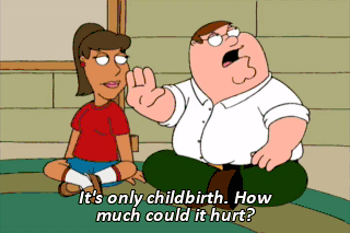 It's only childbirth. How much could it hurt? Peter, It's like taking your bottom lip and stretching it over your head to the back of your neck!