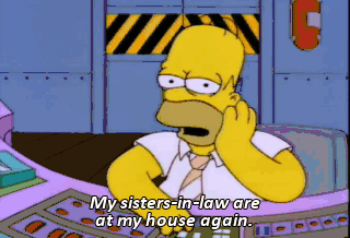 My sisters-in-law are at my house again. Homer, quit wallowing in self-pity. Pull yourself together and come get drunk with us.
