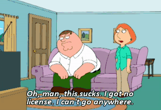Oh, man, this sucks. I got no license. I can't go anywhere.