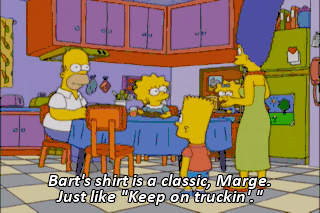 Bart's shirt is a classic, Marge. Just like "Keep on truckin'." As if I would ever want to stop truckin'.