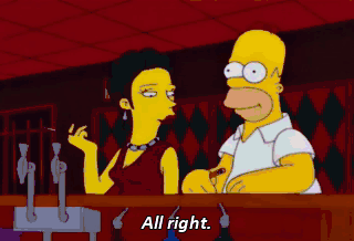 All right. Hey, Moe! Can I pay with a drawing? Yeah. Nice try there, twelve step. Uh, Homer, you're making us a little bit uncomfortable.