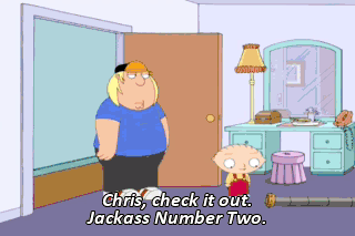 Chris, check it out. Jackass Number Two. (FARTS) (SNIFFS) (SCREAMING) (RETCHING) (EXCLAIMING IN DISGUST)