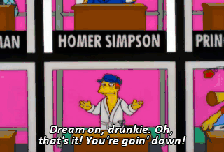 Dream on, drunkie. Oh, that's it! You're goin' down! Stop it, you two! You're making Scratchy cry!