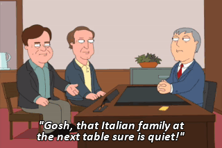 "Gosh, that Italian family at the next table sure is quiet!"