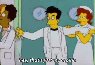hey, that's just my aspirin chuck it out you're checkin' in When I grow up, I wanna be in the Betty Ford Center. You'd better start saving now. It's very expensive.