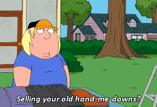 Selling your old hand-me-downs? Yep. You got anything you used to wear in the summertime? - Just these old shorts. - Sweet Jesus.