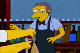 What are you doing? You're getting some kind of booze all over me. Time's up! The answer is beer! Ooh. Duff luck. I never would've figured that out. That's the kind of thing you just got to know.