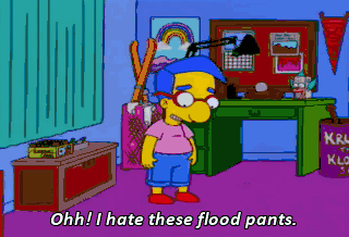 Ohh! I hate these flood pants. Hey, they're working! My feet are soaked, but my cuffs are bone-dry! Everything's comin' up Milhouse!