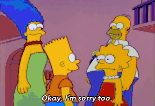 Okay, I'm sorry too. No, no, no ! That won't do at all ! Yeah, boy. Get down on your knees and beg for forgiveness !