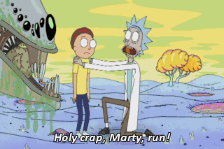Holy crap, Marty, run! I never seen that thing before in my life. I don't even know what the hell it is! We got to get out of here, Marty! It's gonna kill us! We're gonna die! We're gonna die, Marty!