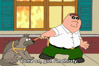 Come on, girl. I'm thirsty. All right, you don't want to come in? Fine. I'll just tie you to this parking meter. Hey, Horace. I'll have a Pawtucket Patriot.