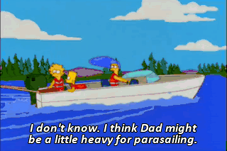 I don't know. I think Dad might be a little heavy for parasailing. Faster, Marge! Faster! The snapping turtles are massing!