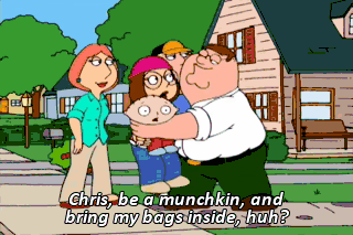 Chris, be a munchkin, and bring my bags inside, huh?