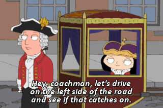 Hey, coachman, let's drive on the left side of the road and see if that catches on.