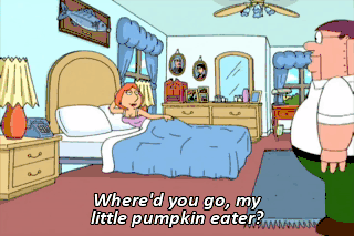 Where'd you go, my little pumpkin eater? To the can, because kissing you made me barf. What? Dad, Meg keeps pushing me!