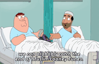we can probably catch the end of Muslim Looney Tunes. (ARABIC MUSIC PLAYING) (STUTTERING) As a pig, I am very dirty and should not be touched by humans.