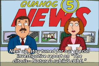 Next up, stay tuned for our special investigative report on "The clitoris-- Nature's rubik'S cUbE."