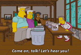 Come on, talk! Let's hear you! (GRUNTS) Here's the scoop, your haagen days are over. I'm baskin' in your pain, as I'm robbin' you of life.