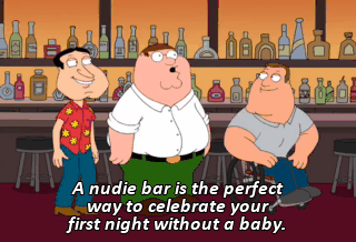 A nudie bar is the perfect way to celebrate your first night without a baby.