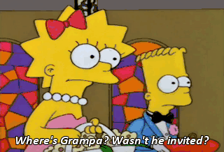 Where's Grampa? Wasn't he invited? Yeah, but his reply envelope... just had a check to the gas company in it.