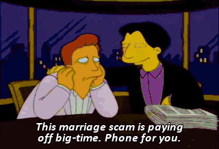This marriage scam is paying off big-time. Phone for you.