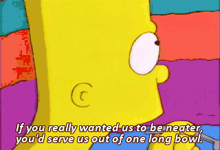 If you really wanted us to be neater, you'd serve us out of one long bowl.