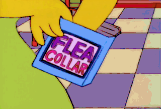 Mom, why do I have to wear a flea collar? Oh, it's just easier this way. Ahh-- D'oh! Ahh-- D'oh!