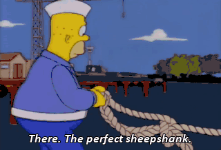 There. The perfect sheepshank. Very nice, Simpson. But next time, tie the other end to the ship! No!