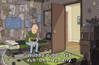 Wubba dubba dub dub! Oh, Hey, Jerry. W-W-W-What are you doing in my room, buddy? Nothing. Iwasjust, um... checking the smoke detectors. All right. Okay, get out.