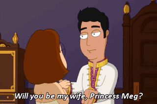 Will you be my wife, Princess Meg? Oh, yes! Yes! (ROMANTIC MUSIC PLAYING) (GUNSHOT) No! Stewie? (INNOCENTLY) Hi, Meg. (ZAPPING)