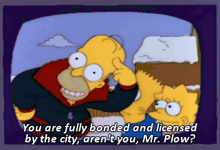 You are fully bonded and licensed by the city, aren't you, Mr. Plow? Shut up, boy.