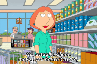 No, actually, Glenn, maybe you haven't heard, but Peter and I aren't together anymore. What? Why? It's a long story. You don't want to hear about it. Shut your face. I want to hear all about it.