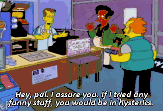 Hey, pal. I assure you. If I tried any funny stuff, you would be in hysterics.