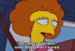 Oh, relax, Bart. Your sister Maggie isn't scared. That's because she can't talk. Daddily-doodily.