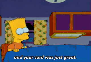 and your card was just great. In case you can't tell, I'm being sarcastic. You stink ! - Could you read that last part back to me ? - "You stink !" Heh-heh-heh. Good.