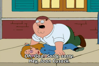 Oh, God! Sorry, sorry. Hey, Joan Cusack. Hello? Oh-oh.
