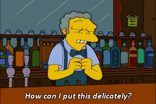How can I put this delicately? I dont got enough booze in this place to make you look good. Maybe death will stop your yammering, huh? Marge, easy. Everyone pile on Homer's wife.