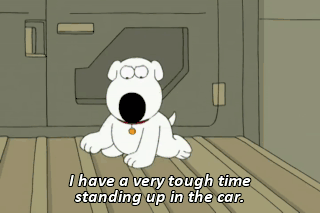 I have a very tough time standing up in the car. Well, then we're fugitives. But at least the family's back together.