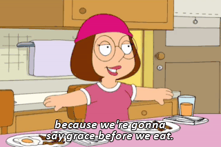because we're gonna say grace before we eat.