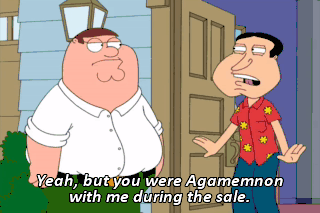 Yeah, but you were Agamemnon with me during the sale. What? I just saw that word somewhere. I wanted to use it.