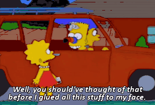 Well, you should've thought of that before I glued all this stuff to my face. Na! Y'ello? Dad? Who is this? It's Lisa. I just called to tell you how much I love you.