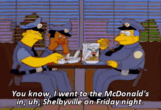 You know, I went to the McDonald's in, uh, Shelbyville on Friday night.