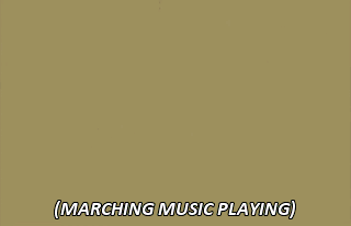 (MARCHING MUSIC PLAYING) (ANNOUNCER READING)