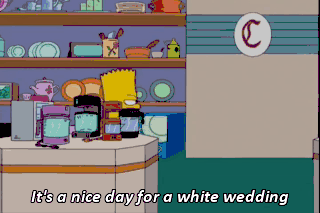 It's a nice day for a white wedding It's a nice day to start again (LAUGHING MISCHIEVOUSLY) (MUSIC STOPS)